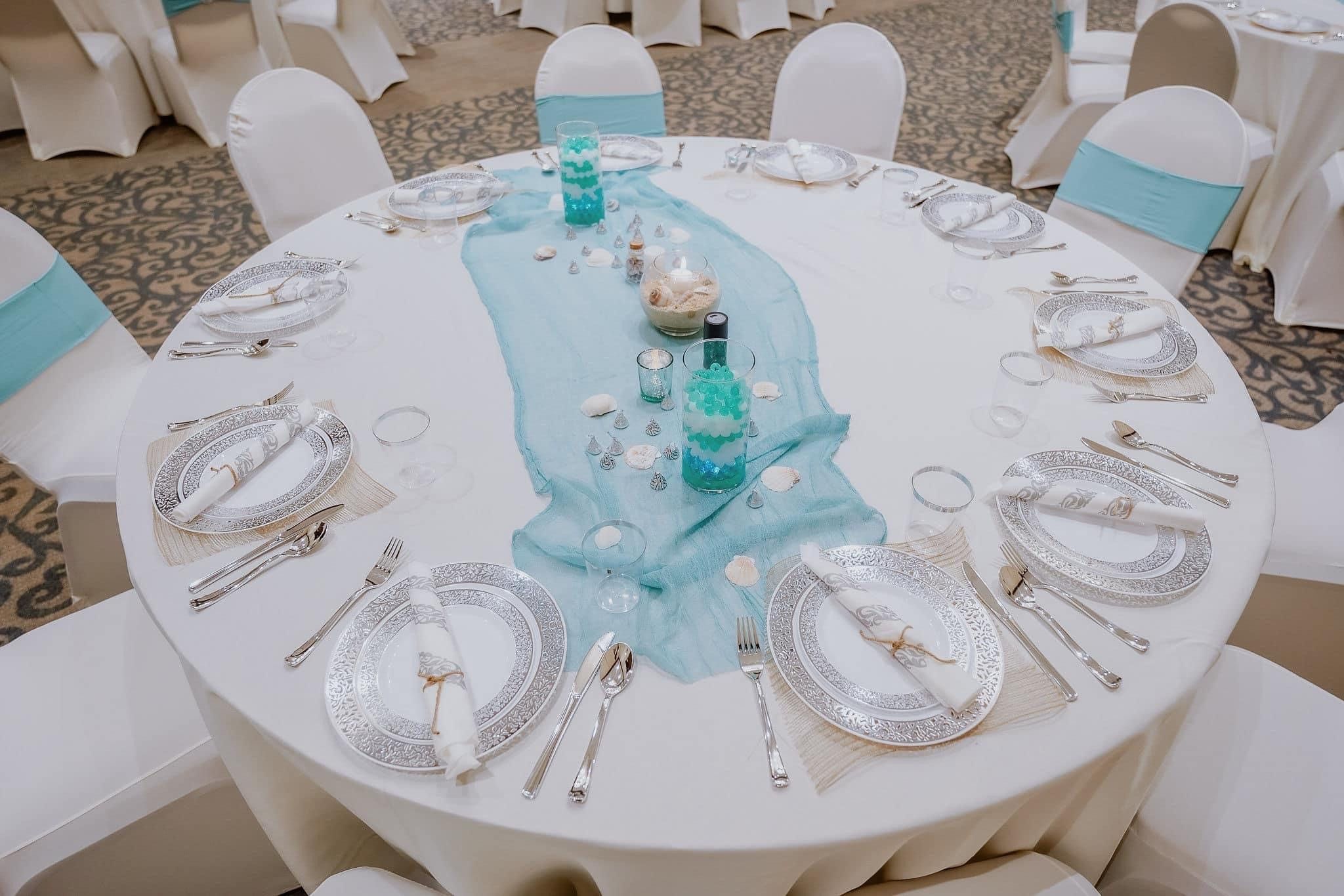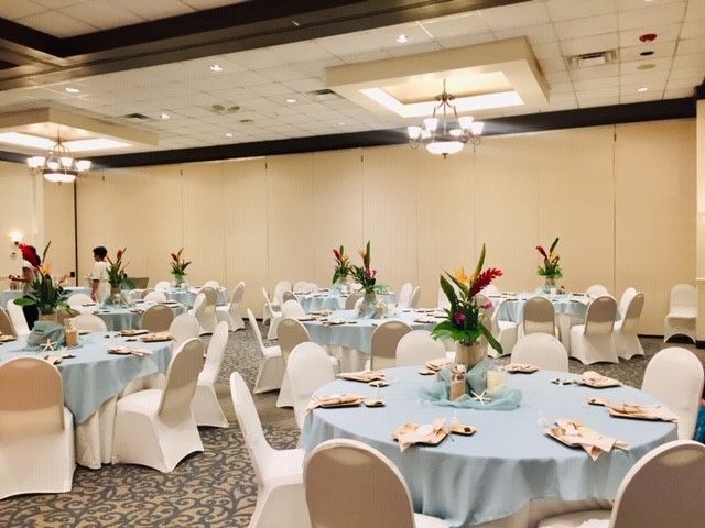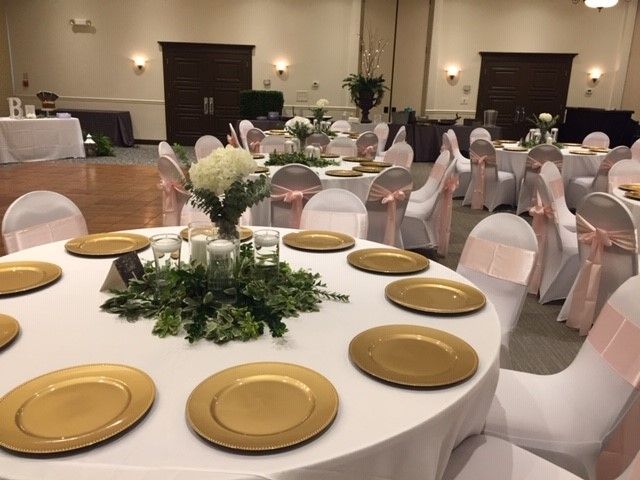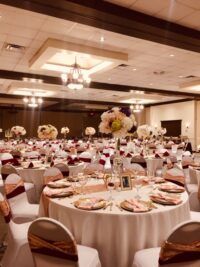 Venue Packages Includes our Banquet Tables, Chairs, Our House linens in light ivory linens for tables and dark brown for food tables, Setup & Teardown in Ballroom for up to 90 guests for reception unless additional sections are added to accommodate more guests.