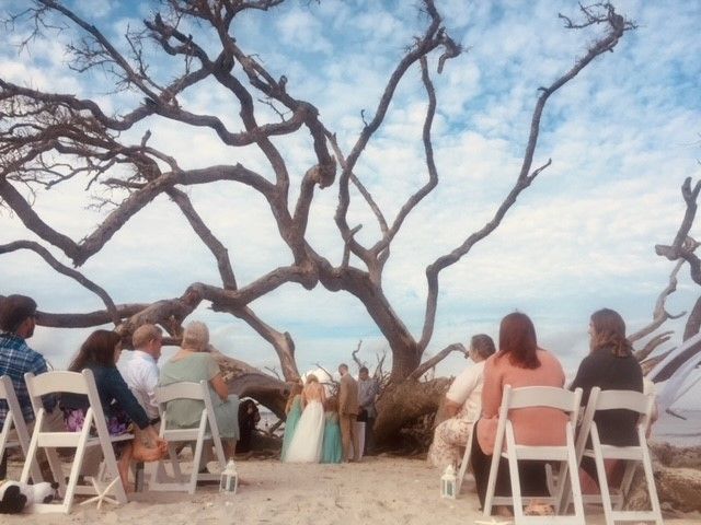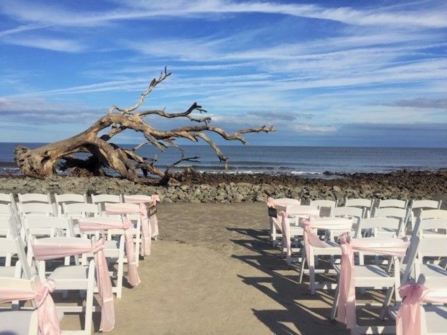 * This is a specially priced elopement or vow renewal package meant for just the couple. We will allow up to 10 guests to attend ceremony, no chairs/setup/decor are provided with this package but will be happy to place any special décor items you would like to bring to enhance your ceremony. Driftwood Beach is a public beach. Rocky Cove areas are sand area above our rock barrier right here on our property, a more private option and not affected as much by tides. Jekyll Island has a tidal beach, so ceremony times are dependent upon tides. Prices are subject to change. Based on availability. There is a $100 additional fee for holidays and sunrise ceremonies. A signed Docusign elopement/vow renewal agreement and 50% deposit of total package price is due at booking, with remaining balance due at check in.